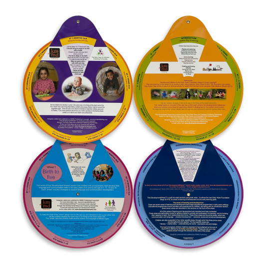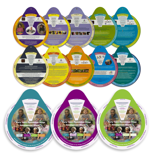 Development Wheels™ are unique, circular resources designed to provide information, ideas and guidance on various child development, health and family support topics. Each wheel is written by specialists and practitioners, making them accessible and relevant to parents, carers, health visitors, childminders, teachers and others working with children.